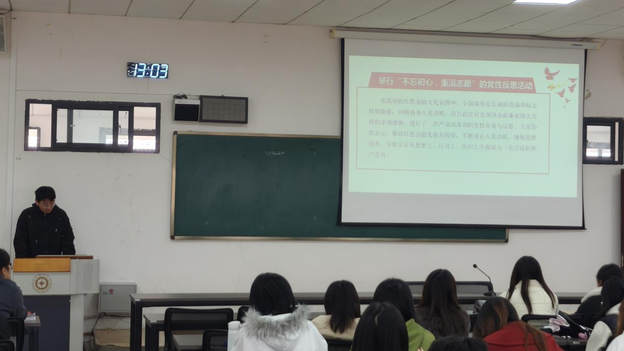 会上,六个小组依次登台,围绕“学习党规党纪,发展对象在行动”这一主题,从实践背景、活动开展情况、收获与不足等层面,以PPT汇报的形式进行了小组展示。学员们紧密结合各自专业背景,从金融、财政等多个角度出发,深入探讨了作为一名发展对象,如何在日常学习与生活中践行党规党纪要求,如何树立正确的职业观念,以及在未来的职场中做到遵规守纪、积极作为。本次活动内容详实、形式多样,取得了丰硕的交流成果。