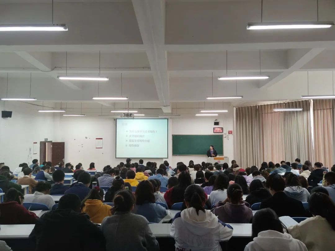 2020年10月30日中午,易忠梅老师在进学楼1—1阶梯教室为团课培训班学员讲授“规范文书写作,强化责任担当”专题团课。