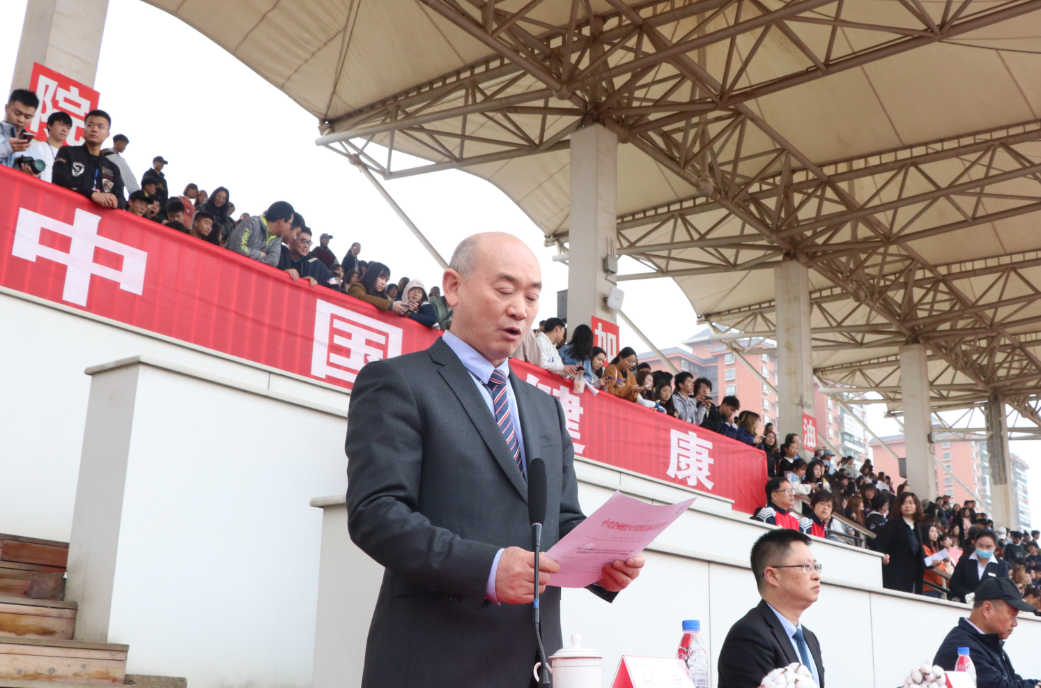 校党委副书记杨勇为本届运动会的召开表示热烈的祝贺、向筹备运动会的工作人员表示衷心的感谢以及向各参赛人员表示亲切的问候,他希望全校师生都树立终生体育意识,促进我校体育事业的发展。随后,裁判员代表、运动员代表宣誓。最后,刘雷书记宣布:运动会正式开始!
