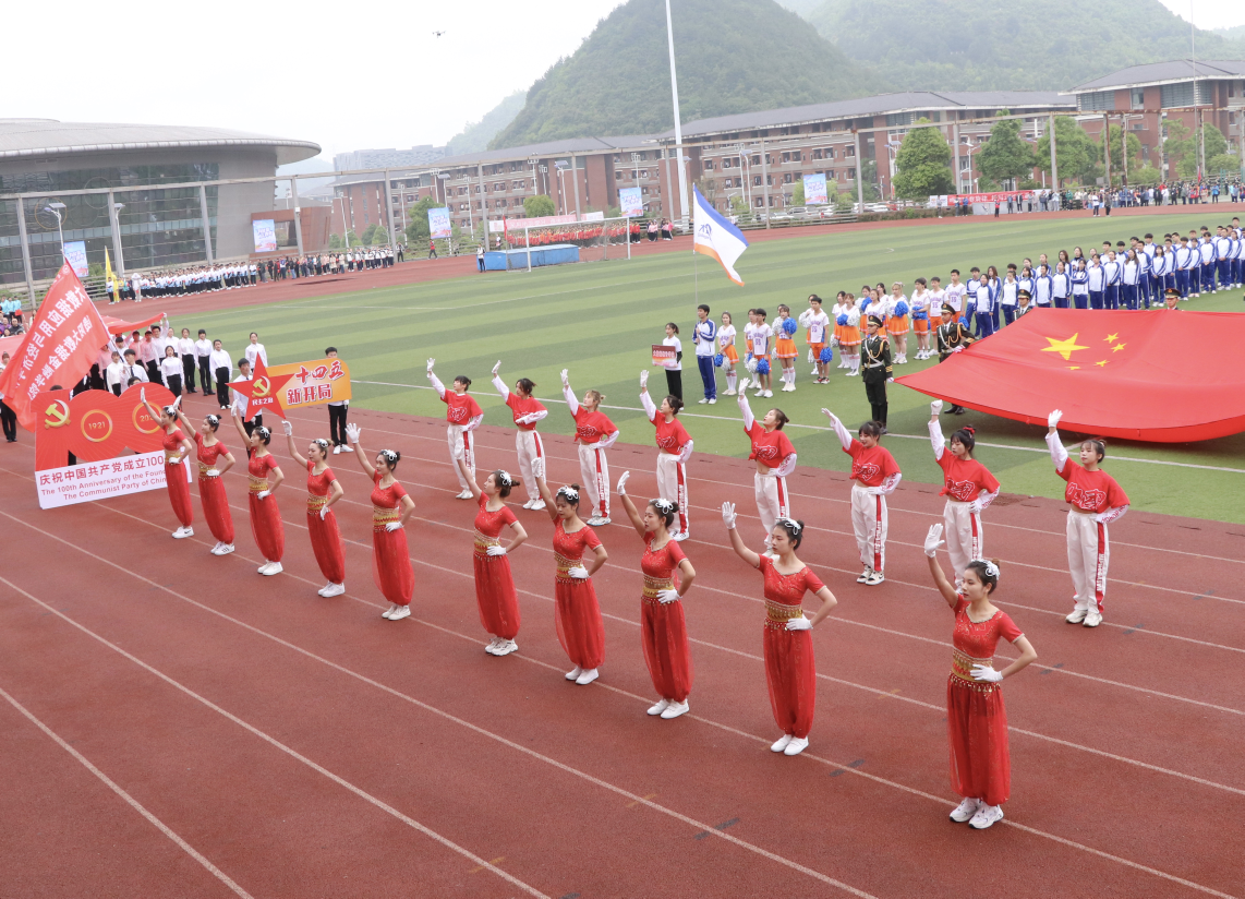 在精彩的啦啦操表演、舞蹈表演、广播体操表演中,运动会拉开了序幕。激烈有趣的八锦赛既高涨了运动会的气氛,又激发了师生的热情。