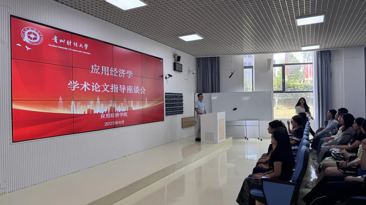2025年8月25日上午,贵州财经大学应用经济学院在进学楼102教室成功举办“应用经济学研究生学术论文指导”专题。本次会议特邀北京大学经济学院赵留彦教授与研究生导师及硕士研究生30余人面对面指导。会议由应用经济学院副院长张小成主持。