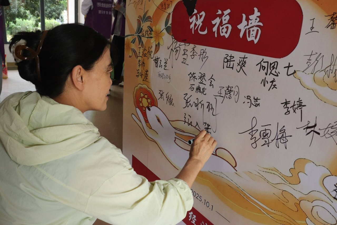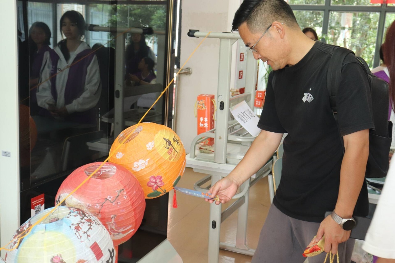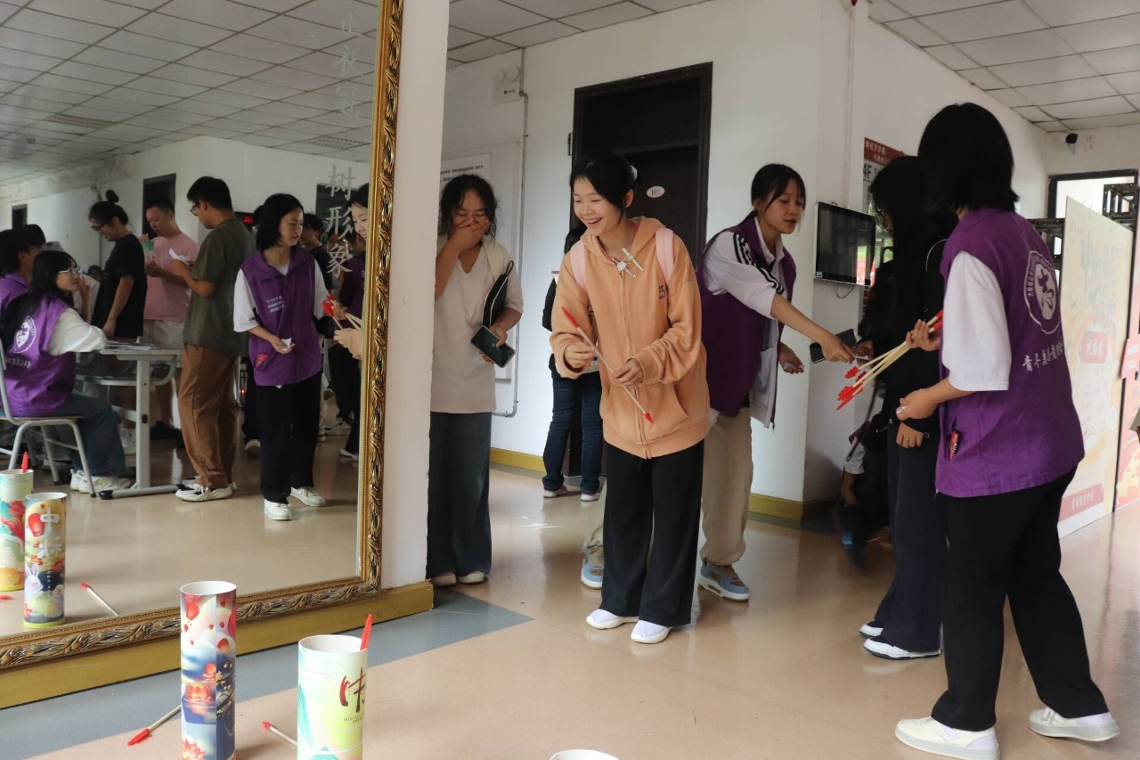 活动当天,校园一隅,灯笼挂满,笑语盈盈。同学们在拼图中寻找家国之美,在诗词互动游戏中感受文化魅力,在投壶游戏中展现少年风气,在猜灯谜游戏中寻找古人智慧,更以真挚的祝福为老师们送上节日礼物,打卡签名,记录下这温馨的时刻。活动现场其乐融融,洋溢着浓浓的家国情怀与青春风采。