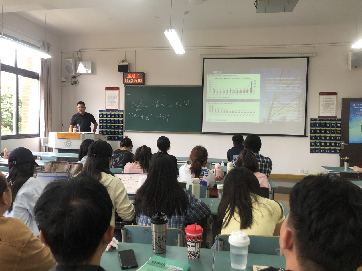 9月24日,贵州梵途科技(集团)有限公司创始人、董事长,贵州财经大学国际商务专业硕士校外产业导师尚剑波应邀参加我院“国际商务论坛”,为我院师生做“物流革新,能源平权:新能源物流产业的历史机遇与挑战”讲座,讲座由应用经济学院院长时宏远教授主持,参加讲座的还有张梅、刘大为、邓细林、赵亮等国际经济与贸易教研室老师,国际商务硕士等60多名师生聆听了讲座。
