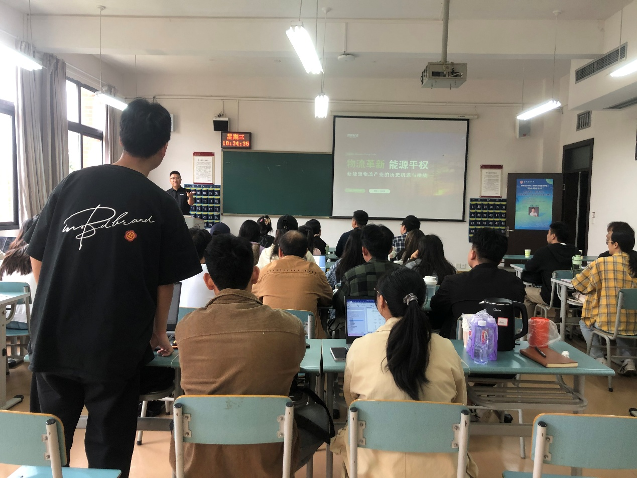 讲座中,尚剑波董事长结合自己丰富的实践经验,从新能源产业崛起的时代背景、物流行业的革新、能源平权等方面介绍了新能源物流产业的发展现状,并结合信息化变革、智慧化变革与新能源变革分析了新能源物流产业面临的机遇与挑战。尚董事长指出,在信息化时代我们应该敢于尝试,强化创新实践,抓住变革的历史机遇,顺应时代发展潮流,争做新能源物流产业发展的开拓者与实践者。