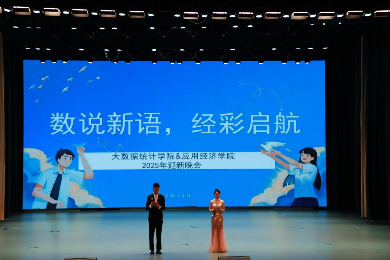 十月金风送桂香,青春乐章正奏响。大数据统计学院与应用经济学院联合举办的2025年“数说新语,经彩启航”迎新晚会于10月10日下午在学生活动中心盛大开幕。