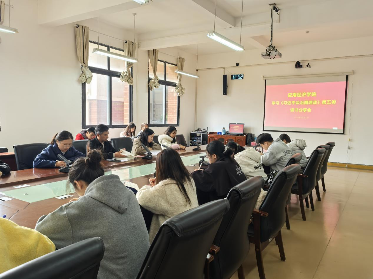 为深入学习贯彻习近平新时代中国特色社会主义思想,11月7日,应用经济学院于明德楼413会议室开展学习《习近平谈治国理政》第五卷心得分享会。学院正处级专职组织员阳喜书记、正科级专职组织员易忠梅老师、党委办公室张秀红老师及学生党建中心全体成员参加此次学习交流活动。