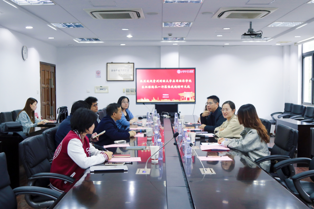 座谈结束后,在杨金强、闵敏等的陪同下,贵州财经大学应用经济学院一行参观了金融学院重点实验室及行政办公区域,直观了解了学院的教学科研设施与管理运行模式。