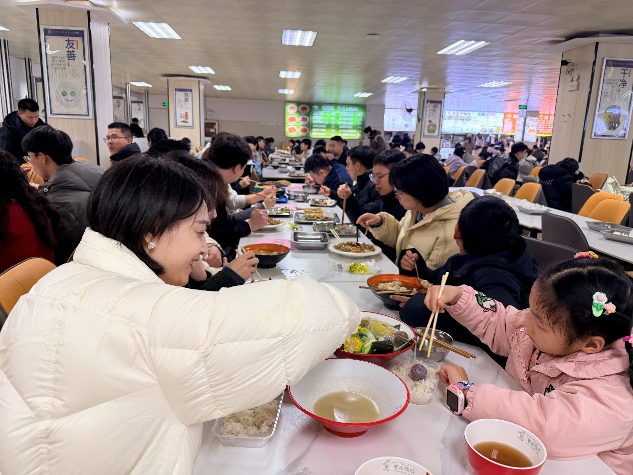 中午,校友与老师们一同前往西区三食堂就餐。久违的食堂窗口、熟悉的饭菜香气,瞬间将大家拉回学生时代。围坐一桌的师生们畅谈当年的“食堂招牌菜”“抢座小技巧”,话题从校园生活延伸到工作近况、家庭琐事,轻松惬意的氛围中,师生情、同窗谊愈发浓厚,三食堂也成为重温青春日常、延续温暖情谊的重要载体。