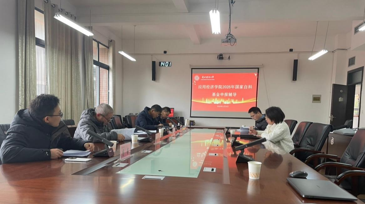 为进一步提升学院教师科研能力与国家级课题申报质量,助力国家自然科学基金项目申报工作提质增效,3月9日下午,应用经济学院在明德楼413会议室召开第二次国家自科课题申报论证会。本次会议特邀科研处处长李天柱教授、贵州省经济系统仿真重点实验室主任余孝军教授、新结构经济学研究院副院长(正处级)傅东平教授、工商管理学院副院长任廷海教授、公共管理学院副院长杨睿教授莅临指导,为申报教师精准把脉、悉心辅导。会议由学院院长朱红琼教授主持,参与本年度国家自科基金项目申报的教师参会。