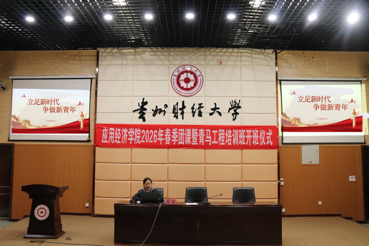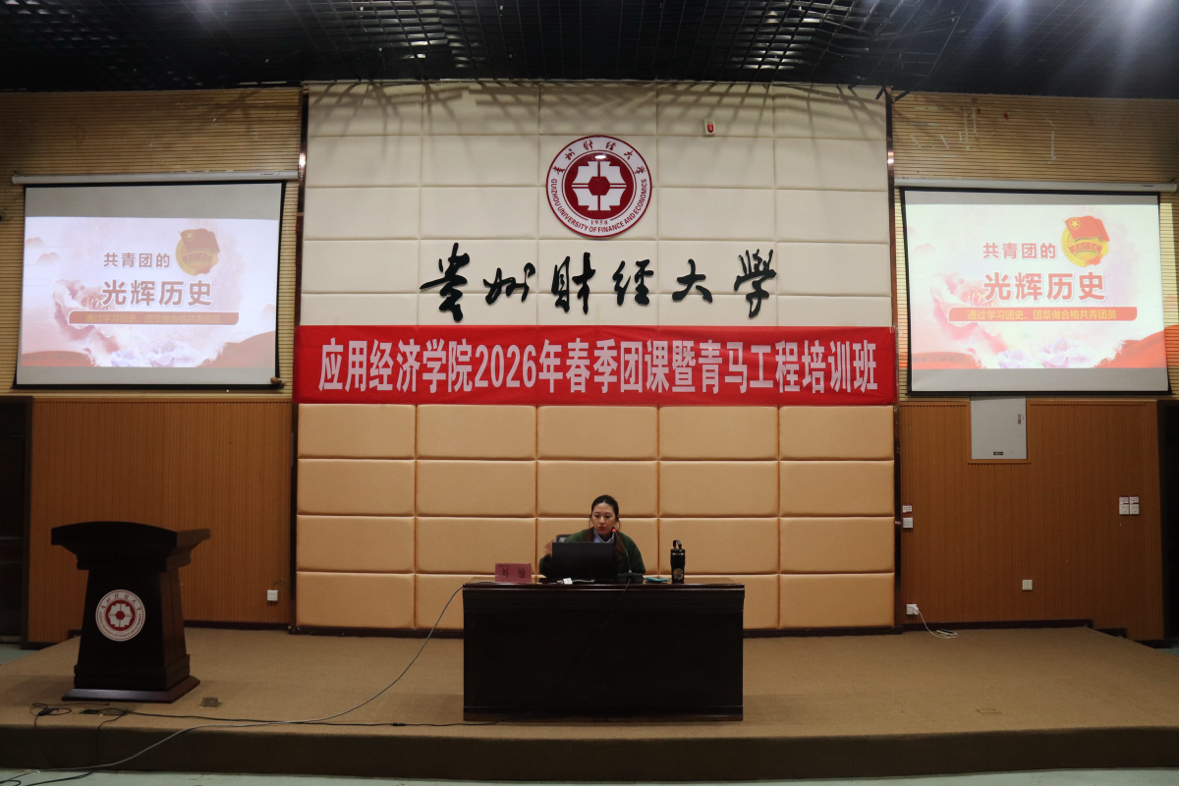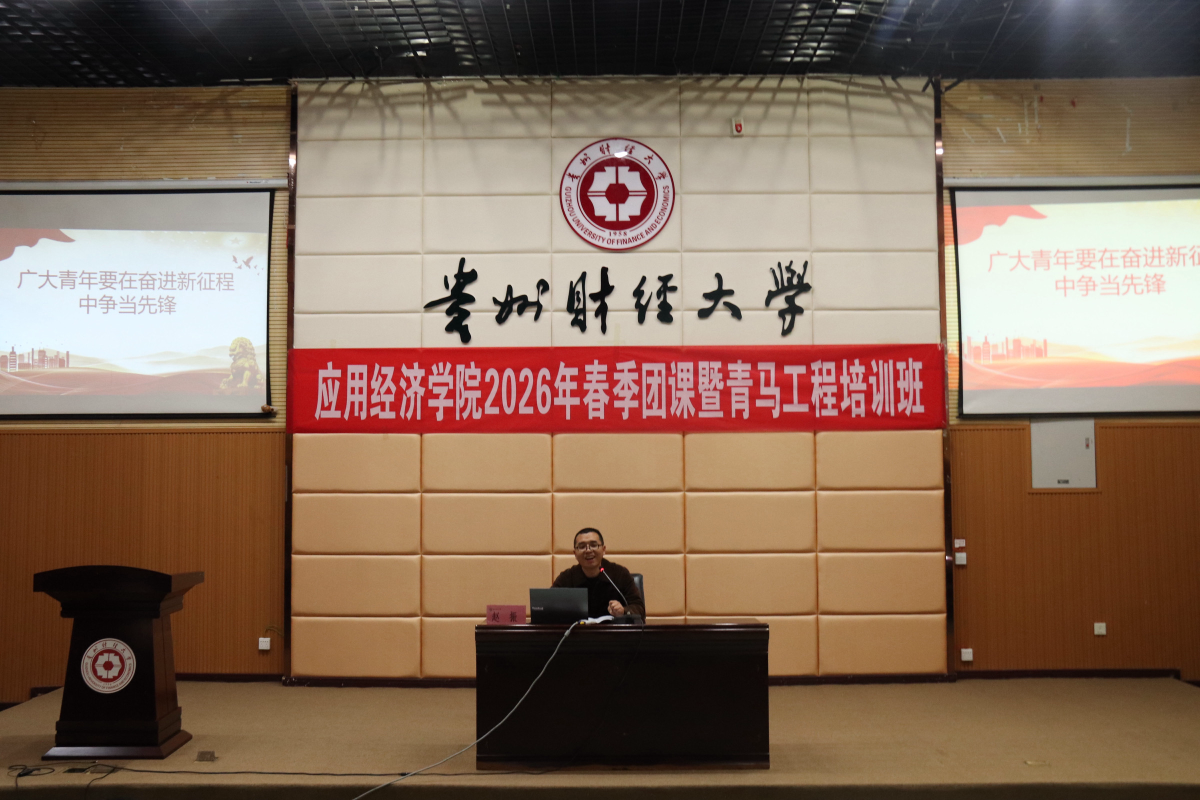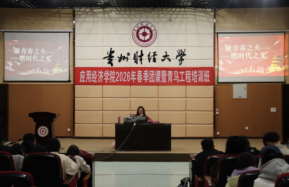 为强化青年思想引领,筑牢理想信念根基,引导广大青年学子明晰新时代使命担当,3月24日至27日,贵州财经大学应用经济学院团委于崇德楼报告厅开展2026年春季团课暨“青马工程”理论学习系列培训。本次培训聚焦青年理想信仰成长主题,深入学习贯彻习近平新时代中国特色社会主义思想和党的二十届四中全会精神,课程内容充实,现场学习氛围热烈浓厚。