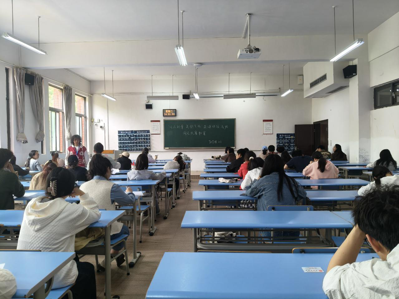 为营造勤学善思的优良学风,激发学生英语学习热情,夯实四六级备考基础,4月21日下午2点30,由应用经济学院主办的学风建设系列活动之“词启新章,英韵飞扬”英语四六级高频词汇初赛在勤学楼教室顺利举办,我院众多学子踊跃参与。