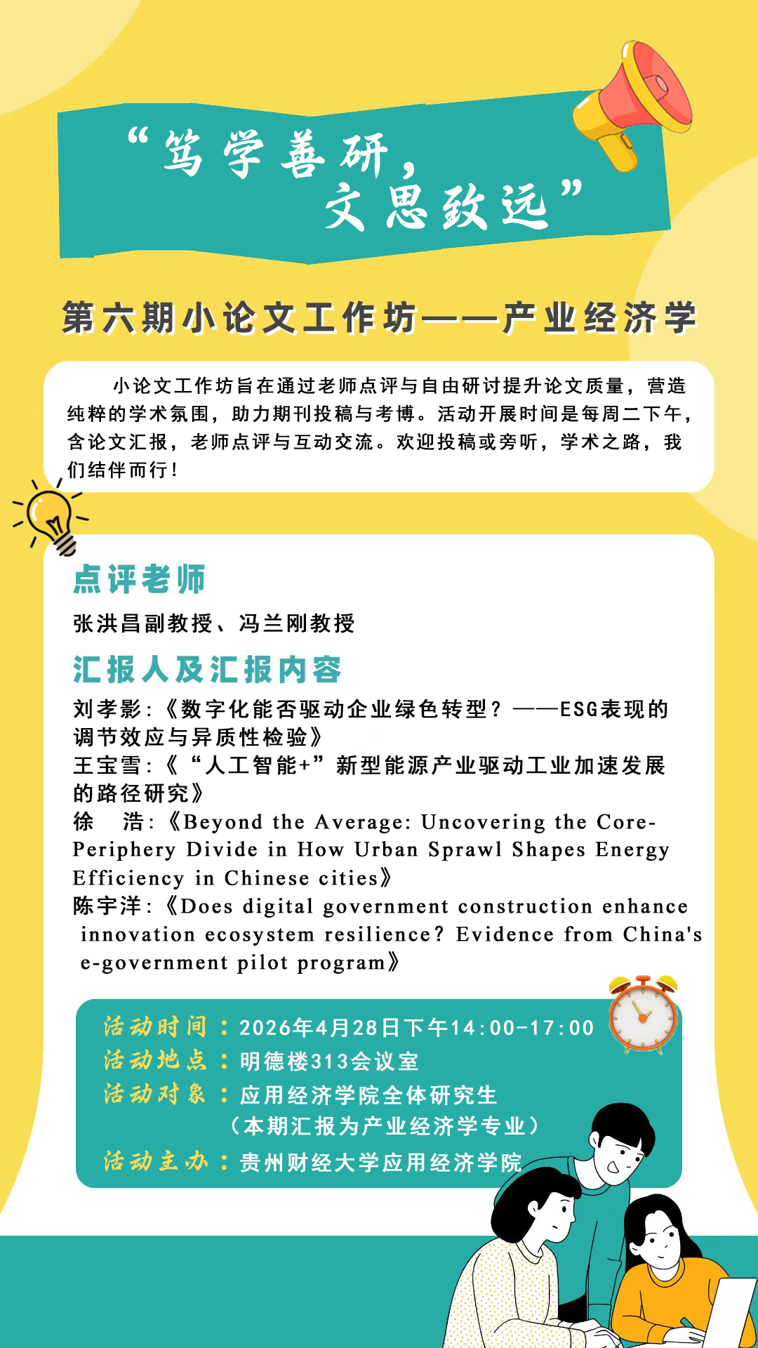 活动对象:应用经济学院全体研究生(本期汇报为产业经济学专业)