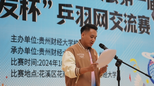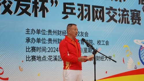 校党委委员、省纪委省监委派驻贵州财经大学纪检监察组组长龙化讲话。他表示,本次交流赛是在全国上下欢庆中华人民共和国成立75周年,在全校上下迎接建校66周年的背景下举办,是广大校友与老师们相互间难得的一次同场竞技,情感交流的盛会。他希望,大家积极弘扬体育精神,不断增强凝聚力和向心力,以更加昂扬的斗志、更加旺盛的精力,更加饱满的姿态投入到祖国建设的各项事业中,为中国式现代化建设贡献贵财力量。