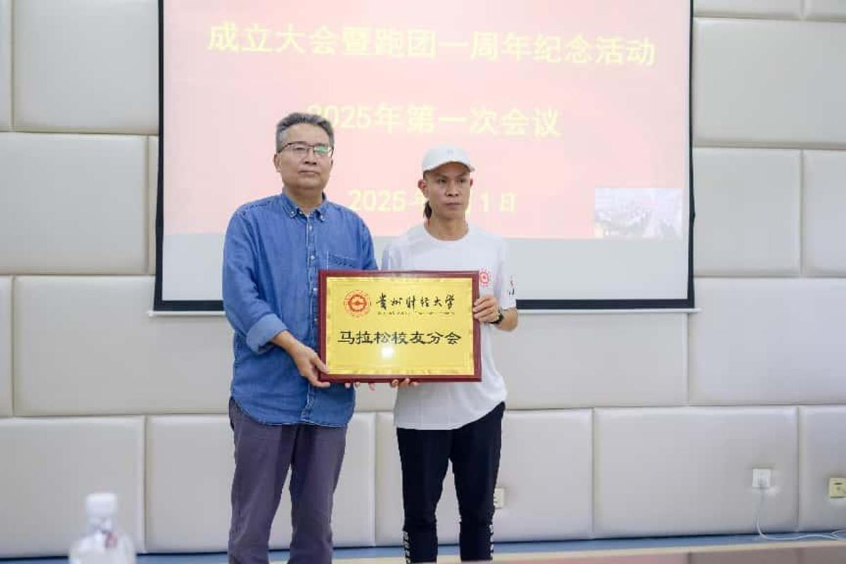 刘元贵代表校友会对马拉松校友分会的成立表示热烈祝贺。他指出,分会的成立壮大了校友新生力量,提升了校友工作活跃度,这是一个充满活力与希望的校友组织,预祝马拉松校友分会在2025年贵阳马拉松赛事中再创佳绩。